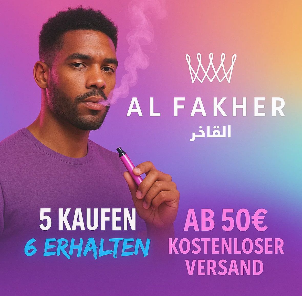Exklusivität: Nur bei uns finden Sie das komplette Al Fakher Sortiment. Schneller Versand: Bestellen Sie einfach und schnell und erhalten Sie Ihre Produkte direkt nach Hause. Top-Qualität: Direkt vom Hersteller – für das beste Dampferlebnis. Schau vorbei und hol dir deine Al Fakher Produkte jetzt bei Al Fakher Store – deinem Experten für Al Fakher Vape in Deutschland!
